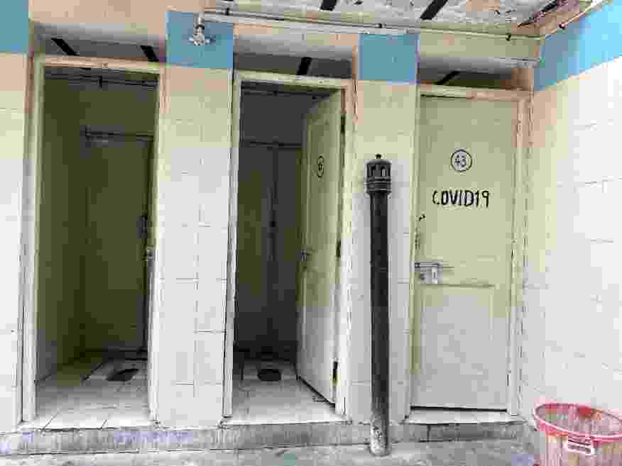 Poorly maintained community toilets, located in the Barapullah sub-basin