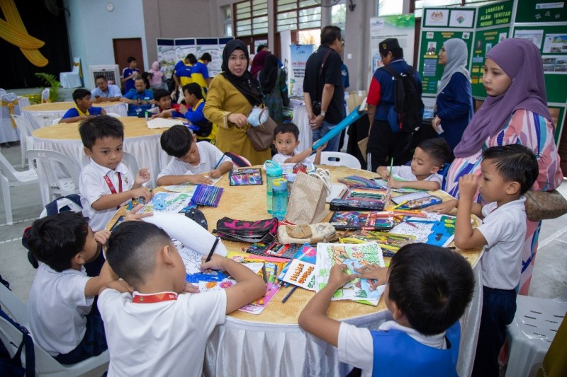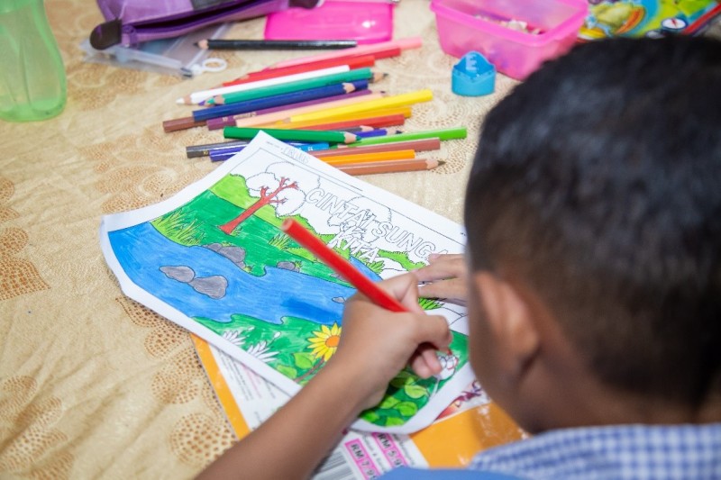 Following a simple story about Sg Johor, the children were invited to colour in illustrations of what they thought a healthy river ecosystem should look like.