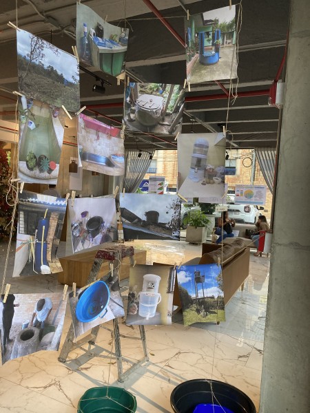Ángela's installation displayed the many water storage strategies currently implemented in Cajibio. The installation was centred on water-filled storage devices, used in this case to sustain the entire photo display.