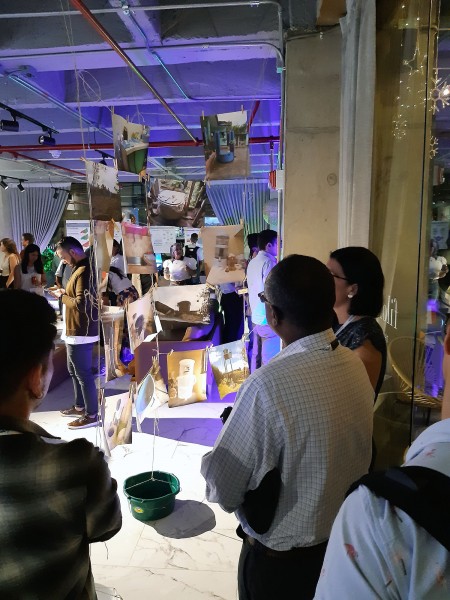 The installation invited spectators to gather and discuss household water practices, while Angela introduced them to the topic of intermittent water supply in Colombia and its close relationship with water storage practices within households.